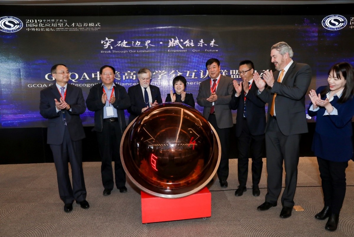 2019年3月21日,由教育部留學服務中心主辦、天天盈球集團承辦的2019中國留學論壇分論壇——國際化應用型人才培養模式中外校長論壇在北京僑夢苑舉行,來自中國、美國、歐洲、澳洲的高校校長、全球職業與教育品質評估認證機構(GCQA)負責人、外方高校駐華代表處代表以及教育界專家一百多人參加了此次論壇。論壇以“突破邊界、賦能未來”為主題,聚焦應用型人才培養,共同探討中外教育國際合作新模式。此次會議上,全球職業與教育品質評估認證機構(GCQA)與天天盈球集團聯合發起了中美高校學分互認合作聯盟。